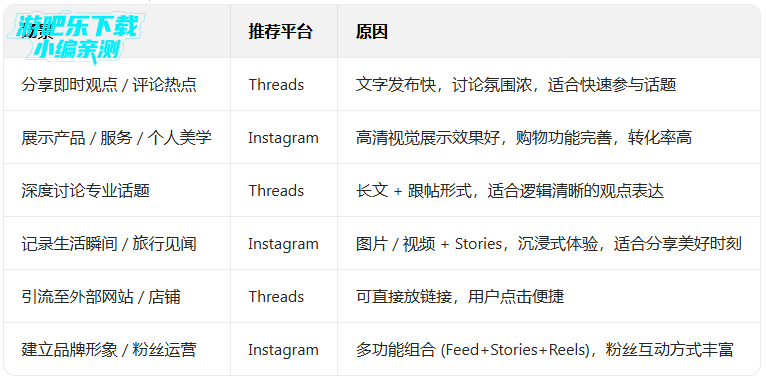 喜欢文字表达、关注热点讨论→优先用 Threads