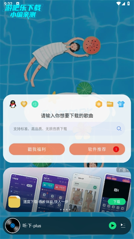 下载进入听下plus软件,主页可以搜索想要听的歌曲