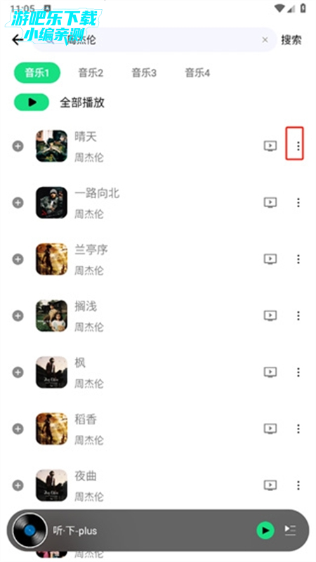 3、找到要下载的歌曲之后点击歌曲旁边三个点图标