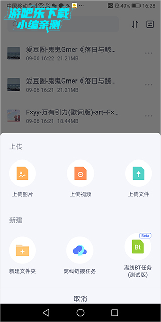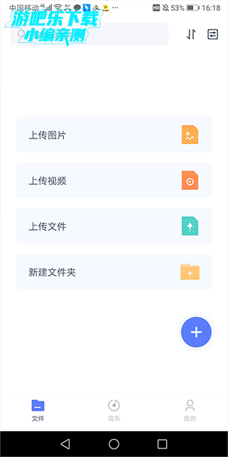 1、打开应用即可根据文件类型将文件上传到云盘中