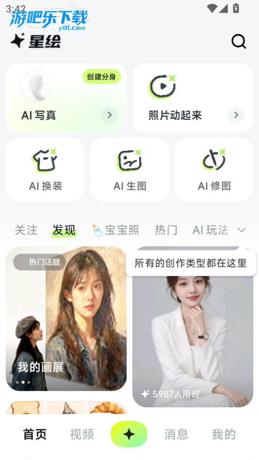 下载进入星绘软件,这里有很多的ai功能可以选择使用