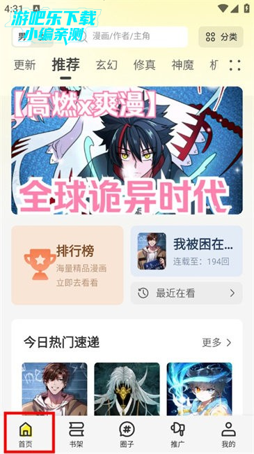 1.在首页可通过分类推荐或分区或通过快捷搜索的方式找到感兴趣的作品,找到后点击进入