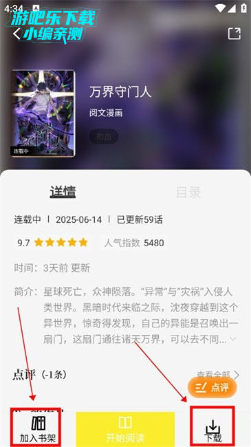 4.如果对该作品感兴趣,还能够添加到书架或是下载到本地中离线阅读
