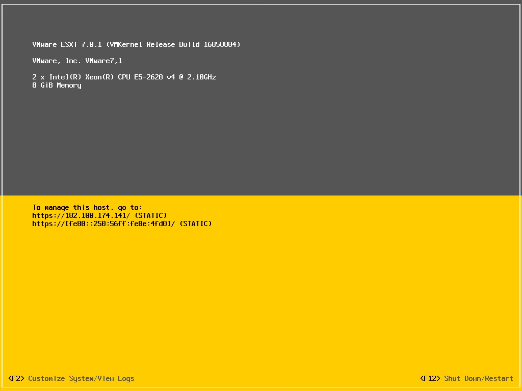 13、服务器重启完成后,进入VMware ESXi 7.0.1正式界面。