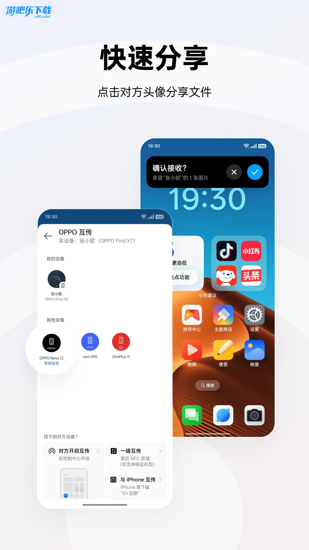 一碰互传功能支持OPPO、一加、Realme等欧加设备间互传,也支持与iOS设备互传