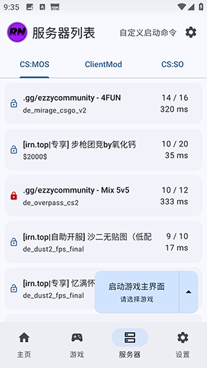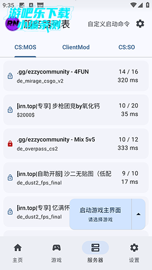 4、进入服务器板块,选择刚刚下载好的游戏。