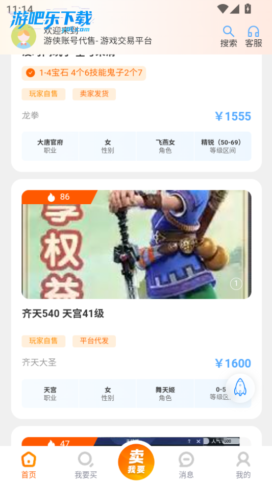 下载进入游侠账号软件,这里有海量的游戏账号可以自由选择