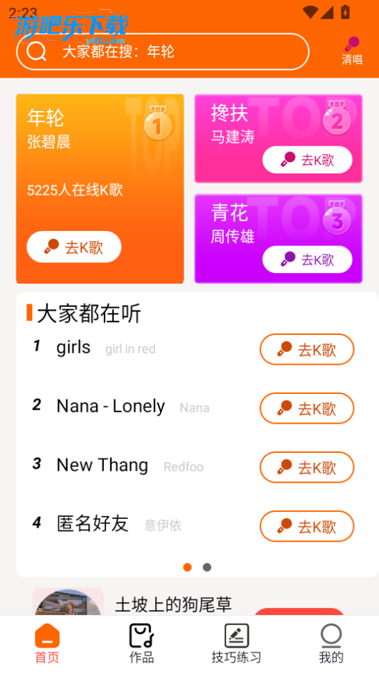 进入全民唱K大师软件,在这里有海量的歌曲可以选择