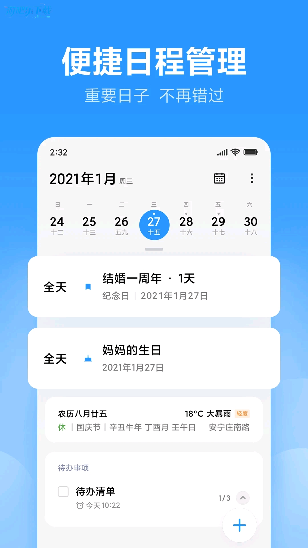 小米日历APP凭借其全面的功能、贴心的女性关怀和强大的日程管理能力,已成为小米手机用户不可或缺的日常工具。无论是工作安排、健康追踪还是休闲娱乐,都能通过小米日历高效管理,让每一天都更有条理、更精彩。立即下载体验,开启智能生活新方式!
