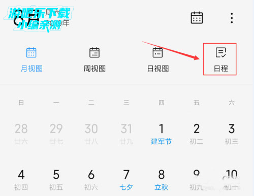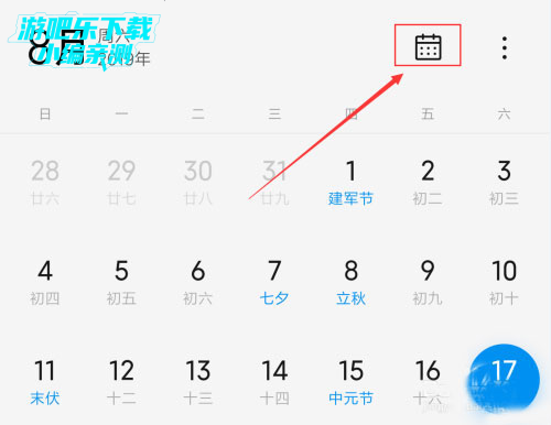 1、在本站下载小米日历app,进入主界面中,点击页面上方如图所示图标;