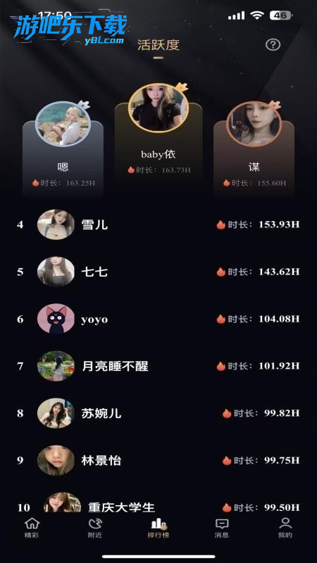 平台中可以获取活跃度排行榜信息,以便用户结合排行榜查找活跃的用户;