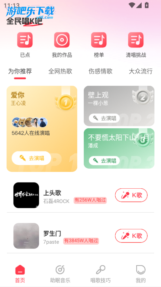 下载进入免费唱k吧软件,这里有海量的歌曲可以选择