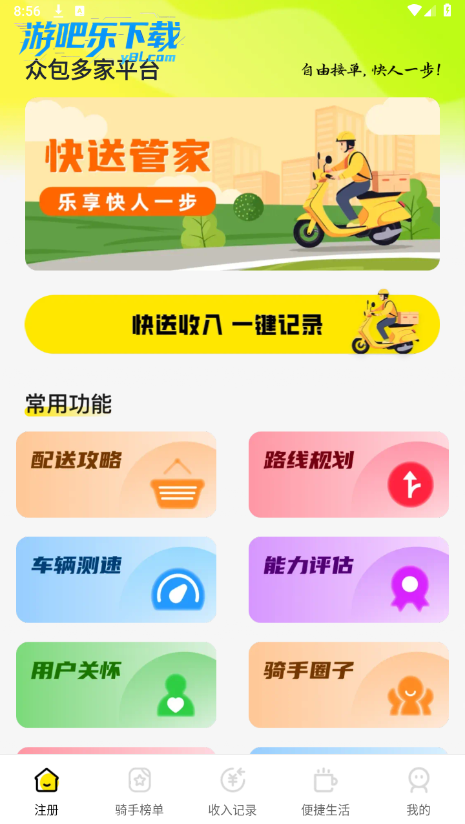 2、首页可以查看各类外卖攻略供你查看,帮助新手骑士快速上手,