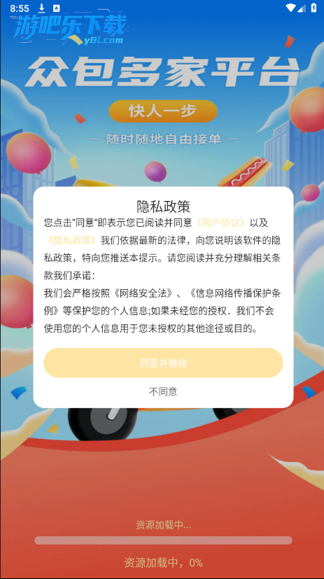 1、在游吧乐下载众包多家平台app安装到手机上,