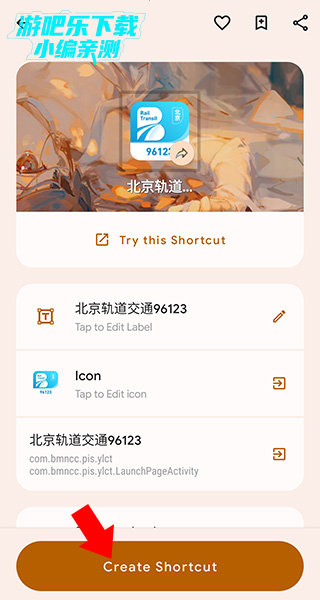4、更改完成后点击右上方勾号返回快捷方式创建界面后,点击Create Shortcut即可完成快捷方式创建