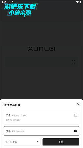 用户可以在首页搜索框中直接输入迅雷云盘链接地址进行在线转存文件,转存时可以选择转存位置