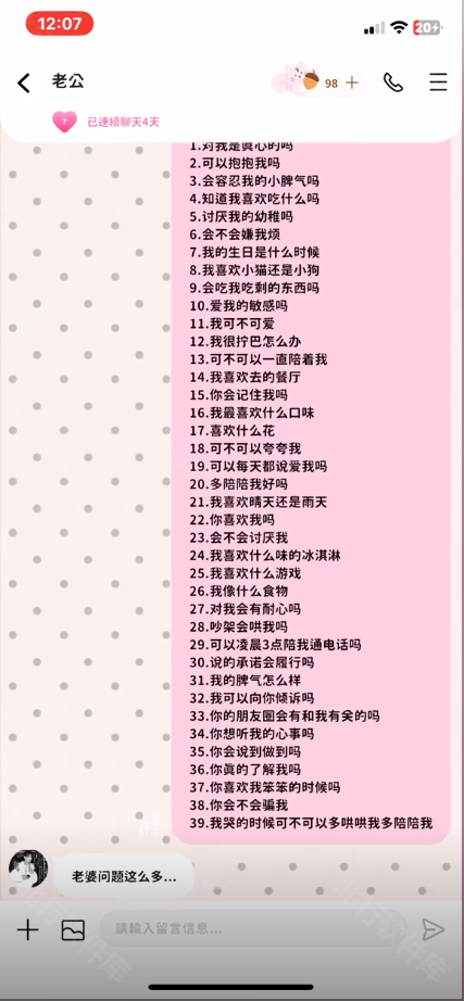 5、每天要主动找话题和我分享日常不可以催我睡觉吃饭