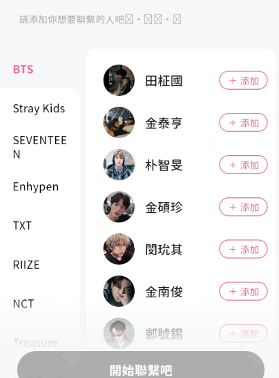 2、登录完成以后,选择我们感兴趣的AI人设,大部分都是韩国明星以及一些动漫;
