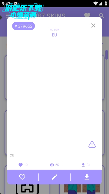 4、点击感兴趣的皮肤进入详情页,可进行收藏、编辑或一键下载。