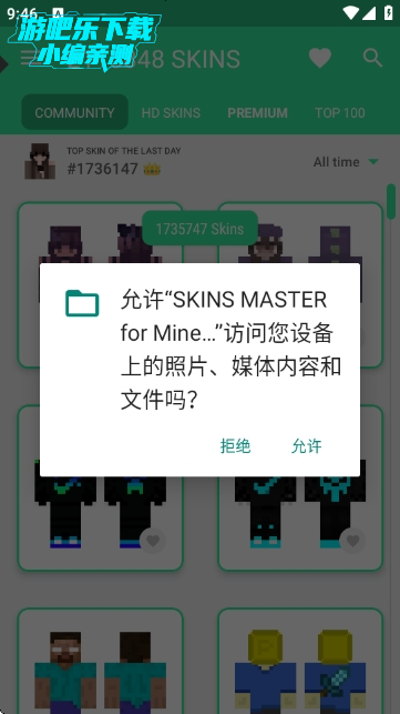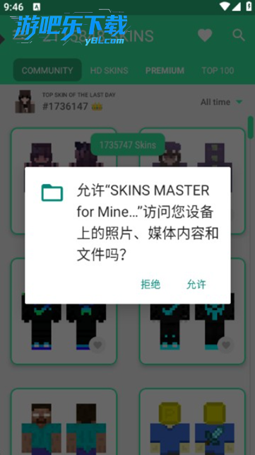 1、启动APP后点击“允许”文件访问权限,以便下载与保存皮肤。
