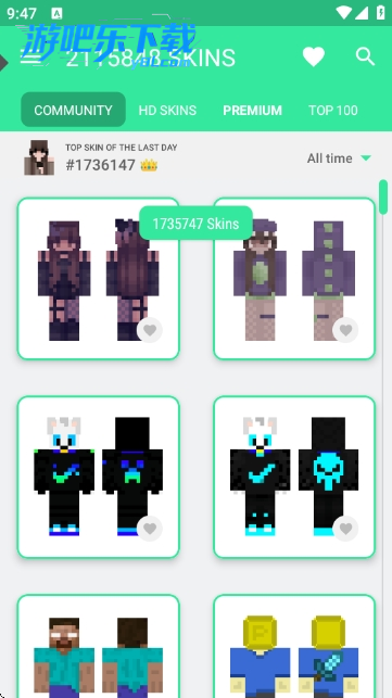 2、进入“COMMUNITY”板块查看热门皮肤或最新发布的作品。