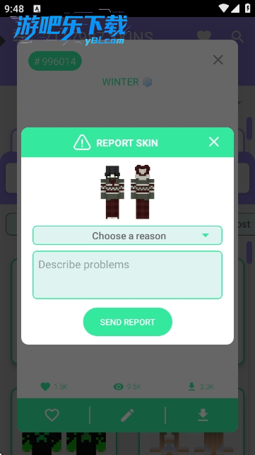 5、发现违规皮肤时,点击举报按钮填写原因并提交报告。
