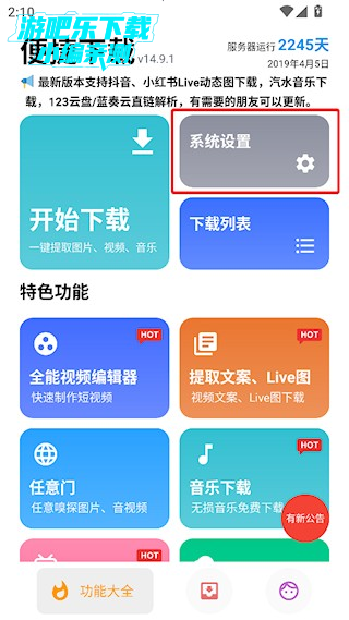 1、打开便捷下载,在功能大全界面点击系统设置。