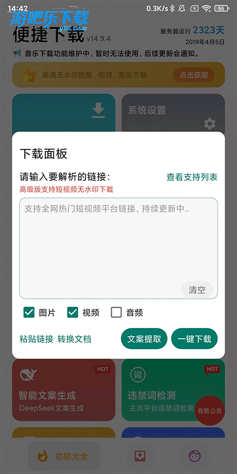 3、然后打开软件,粘贴刚才复制好的链接,就可以开始下载。