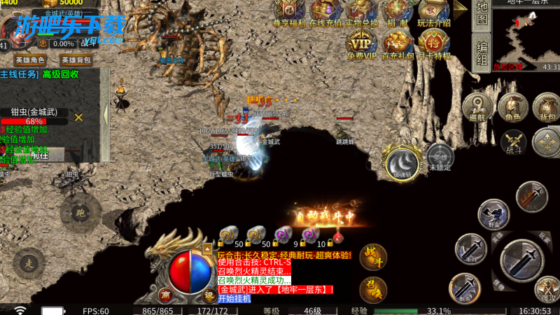 本游戏没有垃圾地图和垃圾怪物,每种怪物都会有产出,打怪越快产出越高,前期boss具有一定挑战难度,请勿越级打怪,合区才是真正的开始