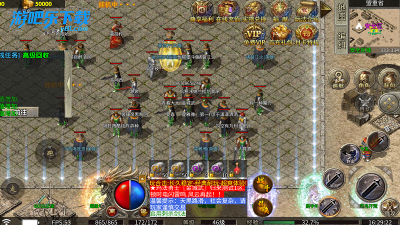 货币材料全靠打:元宝通过装备回收获取,金点可兑换实物,灵符由金刚石转化而来,所有消耗品均能 “打怪自足”,彻底摆脱付费依赖。