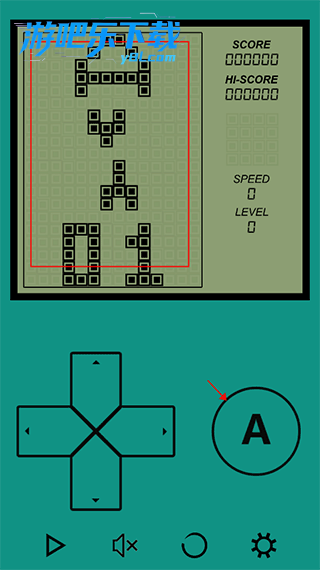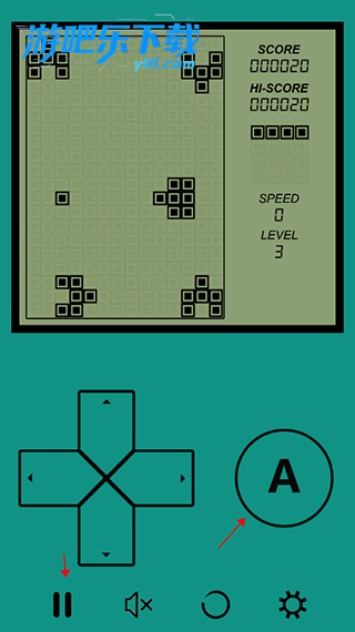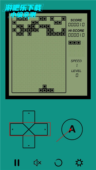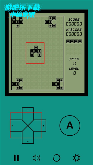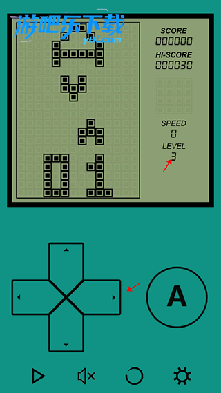 2、虽然游戏界面看起来很简单,但是每个按钮都是有不同作用的,上下左右按钮可以用来控制方向移动,A按钮不仅可以选择哈可以改变形状等,还有开始按钮和重来按钮。