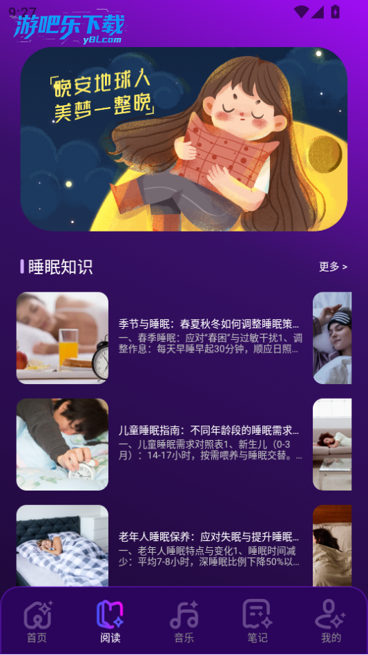 点击睡眠知识可以进行阅读