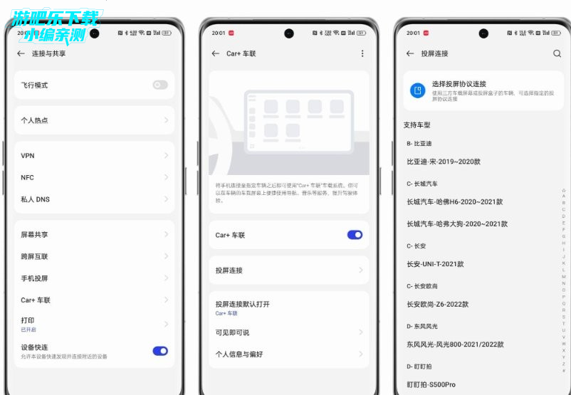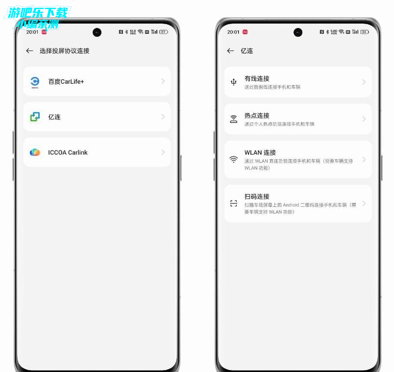 车机投屏功能(Car+车联)支持两种连接方式:无线连接和USB有线连接。