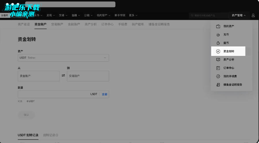 进入欧易官网 www.okx.com点击【资产管理】,选择想要划转的币种,填写数量-【确认】,将所需进行交易的数字资产从【资金账户】划转到【交易账户】,即可体验更多交易。