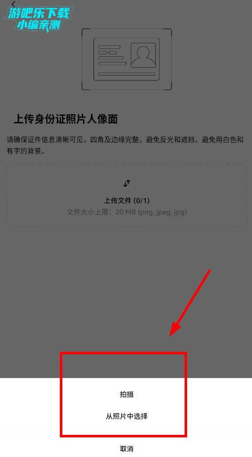 6、在手机中选择已经拍摄好的身份证正反面照片,或者直接点击拍摄;