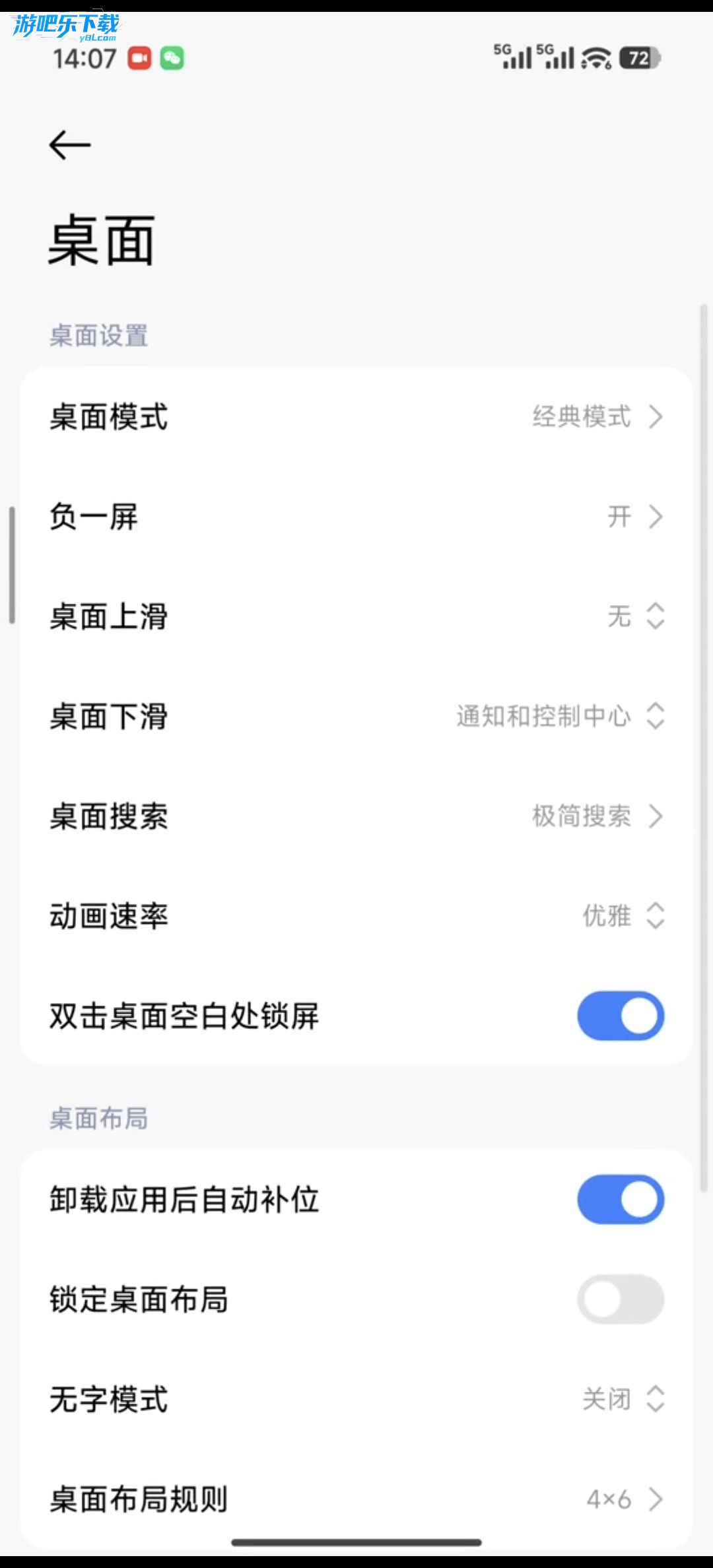 长按桌面空白处 2 秒进入编辑模式,点击底部【设置】可切换横排 / 竖排排列(横排更适配大屏视野),支持调整图标大小(3 档可选)与间距;拖动图标至另一个图标上方,自动创建文件夹,文件夹命名支持 AI 智能识别(如 “办公工具”“娱乐应用”)。