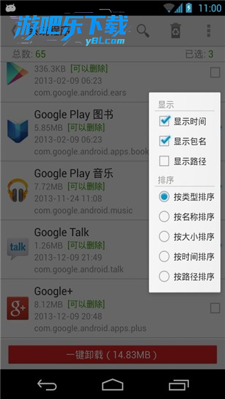 3, 排序功能: 用户可按照类型、名称、大小、时间等方式对应用程序进行排序展示。