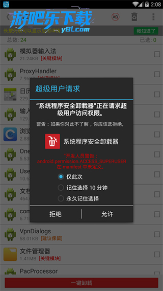 3.系统处于安全性考虑,限制必须有ROOT权限才可以卸载系统应用!