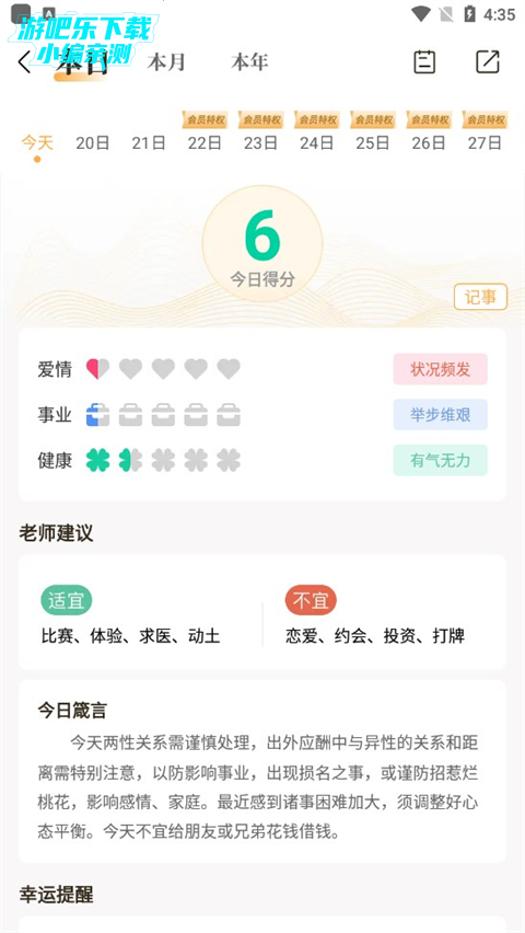 4、然后就可以看到今天的详细运势了。