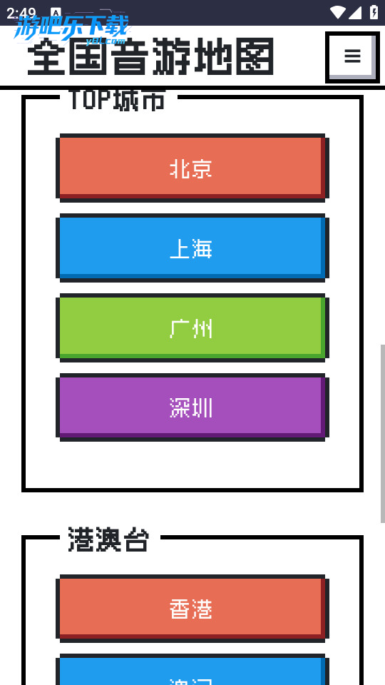 1、进入首页,可以按照地图,游戏,地区等查询信息