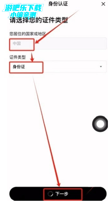 3.选择证件类型:选择证件类型为“身份证”,点击【下一步】。
