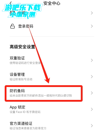2.设置反钓鱼码: 进入安全设置,设置一个反钓鱼码,用于识别官方邮件。