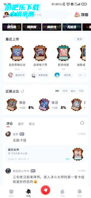 1、这款软件玩家下载即可直接体验,无需登录也可以正常使用,查看各种信息,首页也有很多趣味游戏王功能,注册登录还可以和其他牌佬交流。
