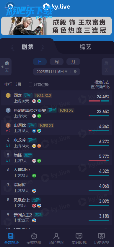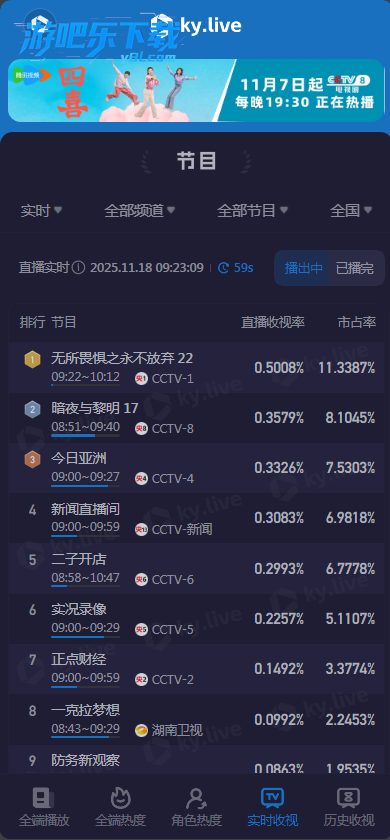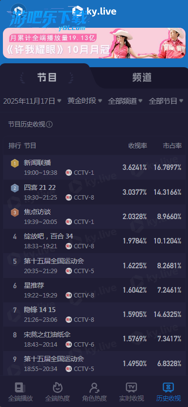 精准化的查询与浏览:用户登录后可浏览多个平台的播放情况,还能自主选择关注的平台。点击电视直播选项就能查看实时收视数据,若想深入了解特定卫视或平台,也可直接查询获取详细数据,满足不同用户的聚焦需求。