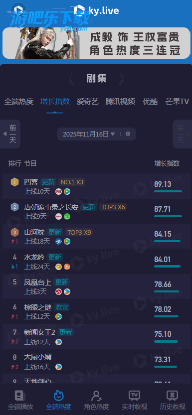酷云eye收视数据查询软件官方版.是一款聚焦影视收视数据分析的工具类软件,同时也标注有智能设备管理相关功能,其核心价值集中在为用户提供全面、实时的影视收视数据,方便剧迷选剧和了解影视市场动态!