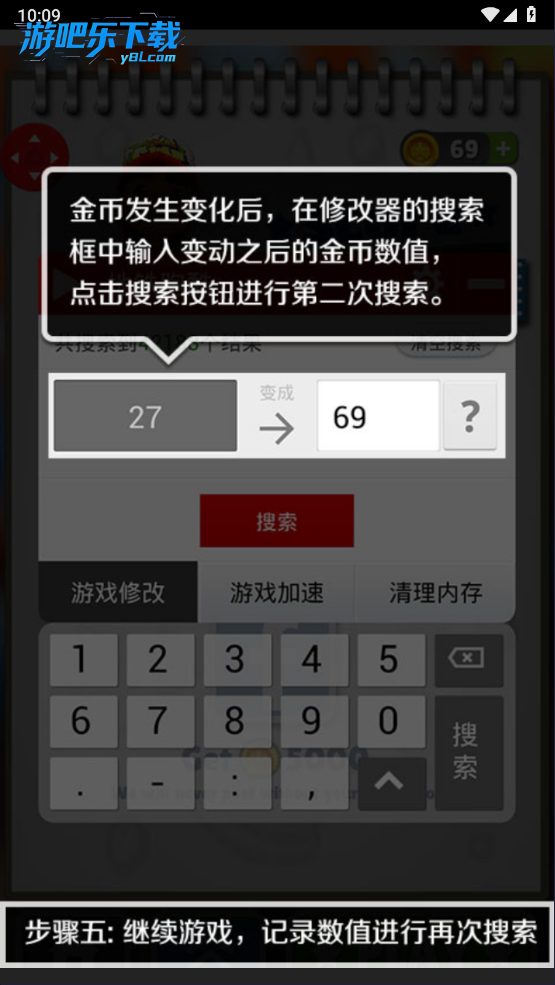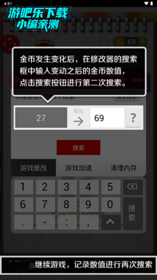5、然后进行游戏使金币数量发生变化之后,再次进行变化后的数量搜索。