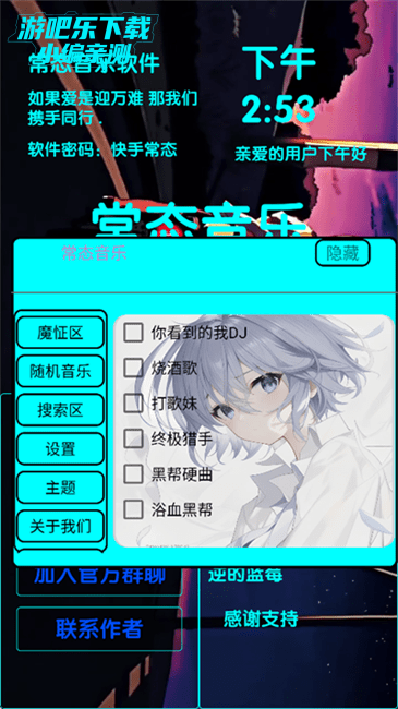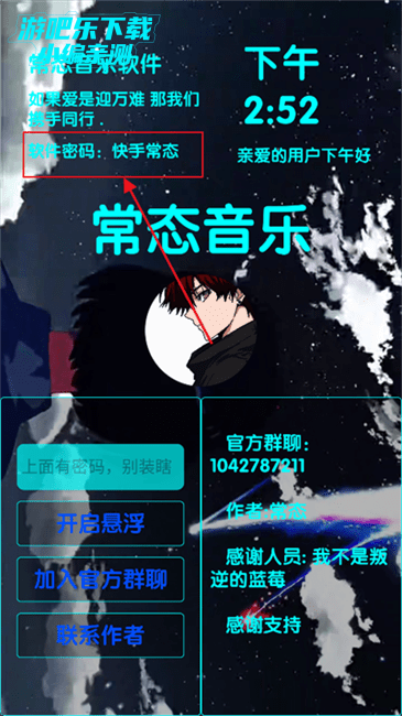 输入软件密码:快手常态