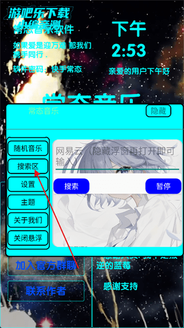点击搜索区可以快速搜索音乐