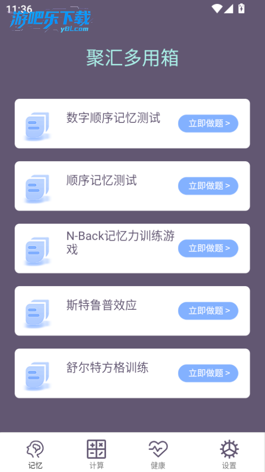 1、提供数字顺序记忆、斯特鲁普效应、舒尔特方格等多种记忆训练测试。