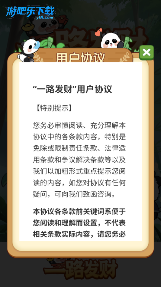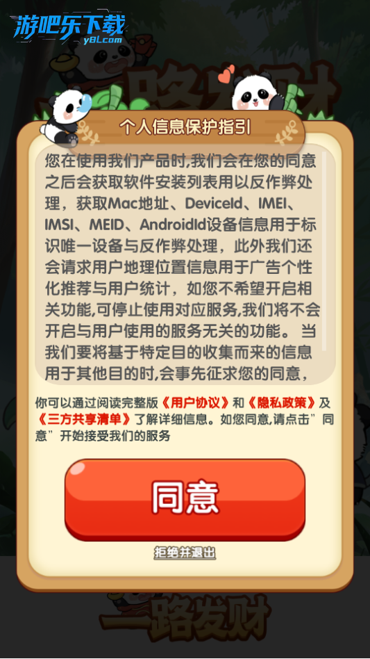 进入一路发财游戏,点击同意